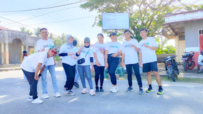 Jalan sehat diikuti oleh para insan BUMN dan masyarakat umum, termasuk turut dihadiri oleh Bupati Bolmut Depri Pontoh.