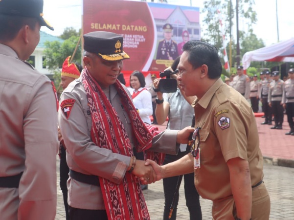 TOMOHON – Sekretaris Daerah Kota Tomohon Edwin Roring SE ME wakili Walikota Tomohon sambut kunjungan Kapolda Sulut Irjen Pol Drs Setyo Budiyanto SH MH di Polresta Tomohon, Senin (13/3/23).