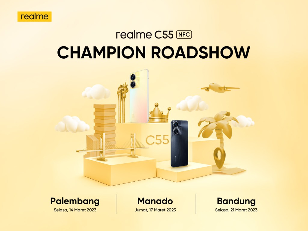 realme C55 NFC Champion Roadshow mengunjungi tiga kota di Indonesia yakni Palembang, Manado, dan Bandung dengan menghadirkan berbagai kegiatan seru seperti sharing session dan workshop.
