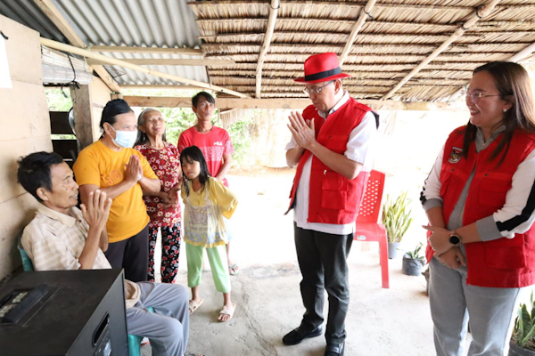 Usai memberikan bantuan kepad akorban kebakaran, Bupati ROR menjenguk Hukum Tua Desa Bukit Tinggi Jerry Kawung yang sedang dalam keadaan sakit, sekaligus mendoakan kesembuhannya.