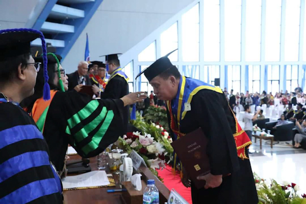 MINAHASA – Wakil Bupati Minahasa (Wabup) Dr (HC) Robby Dondokambey SSi MM MAP (RD) resmi di wisuda dengan Gelar Megister Administrasi Publik (MAP) Strata 2 pada Sidang Terbuka Senat Universitas Negeri Manado Dalam Rangka Pengukuhan Guru Besar, Wisuda Lulusan Sarjana (S1), Magister (S2) dan Doktor (S3) semester genap Tahap l 2022/2023.