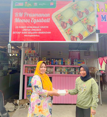 “Sering saya lihat orang-orang kurang mampu di sekitar apalagi saat puasa begini mereka pasti makin sulit. Alhamdulillah warung saya terpilih untuk bisa membagikan paket buka puasa ke mereka, bukan hanya satu hari saja, bahkan satu bulan penuh. Ya semoga yang didapat mereka ini juga jadi berkah untuk puasanya,” jelasnya.