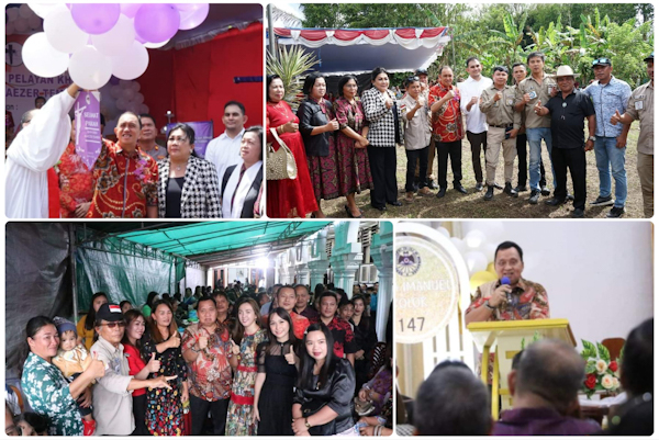 Sementara Wakil Bupati Minahasa Robby Dondokambey Menghadiri Ibadah Syukur HUT ke-147 Jemaat GMIM Imanuel Tolok Dirangkaikan dengan Syukuran Penyambutan Pdt. Fiti Rina Rorong, S.Teol, di Gereja GMIM Imanuel Tolok.