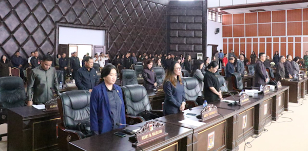 Rapat paripurna dihadiri Bupati Minahasa Dr. Ir Royke Octavian Roring, M.Si (ROR) bersama Wakil Bupati DR Robby Dondokambey, SSi, MM (RD), dipimpin Ketua DPRD Glady Kandouw, SE didampingi Wakil ketua Oktesy Runtu, SH,MSi dan Denny Kalangi serta dan dihadiri Sekda Dr. Lynda D. Watania, MM, M.Sdihadiri Forkopimda anggota dewan Minahasa serta kepala-kepala OPD.