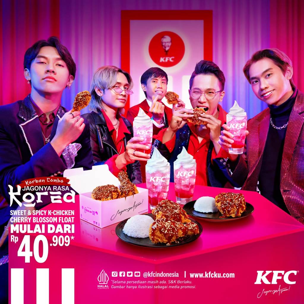 Sweet & Spicy K-Chicken dan Cherry Blossom Float. Itulah dua produk yang hadir dalam kampanye terbaru KFC Indonesia. Sweet & Spicy K-Chicken merupakan ayam goreng KFC yang dipadukan dengan kari merah ala Korea dengan rasa pedas manis. Dan renyahnya ayam goreng KFC semakin terasa nikmat dengan sensasi pedas khas Korea tersebut.