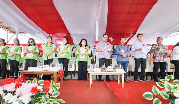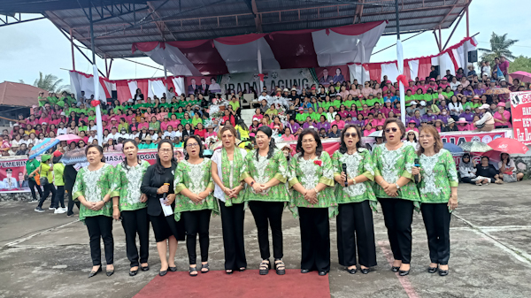 Tombatu Mitra – Ribuan ibu-ibu padati perayaan ibadah agung Hari Persatuan (Hapsa) Wanita Kaum Ibu (WKI) Sinode Gereja Masehi Injili di Minahasa (GMIM), Jumat (26/5/2023).