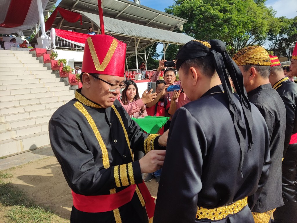 Diketahui, dalam upacara ini pun, Wali Kota AA menyematkan pin kepada pejabat berprestasi serta turut memberikan penghargaan serta kunci 2 unit kendaraan operasionalkepada Kepala Satuan Polisi Pamong Praja Kota Manado.