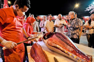 Dalam kesempatan itu pun, Dubes Heri mendapat jamuan special. Dubes Heri disuguhi demo masak makanan khas Jepang, yaitu Sashimi dengan bahan baku ikan tuna.