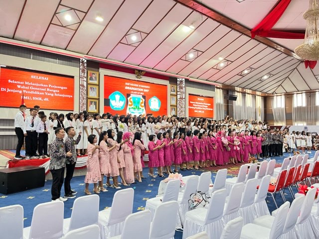 SULUTNEWSTV.com, MANADO – Kurang lebih 300an siswa/siswi terbaik SMP Negeri 10 Manado ikut serta dalam penamatan siswa/siswi kelas 9, di Aula Serbaguna Kantor Wali Kota Manado, Sabtu(10/6/2023).