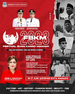 “Festival Bung Karno Manado telah ditetapkan menjadi agenda tahunan Pemerintah Kota sejak tahun 2022. Kegiatan kali ini menjadi wadah mengaktualisasikan seruan solidaritas, yang terkandung dalam Pidato Bung Karno berjudul ‘Membangun Dunia Kembali’,” ujar Ketua Panitia FBKM 2023, Irene Golda Pinontoan.