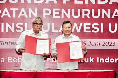 Nota Kesepahaman ini ditandatangani oleh Kepala BKKBN Perwakilan Sulut Ir. Diano T Tandaju, M.Erg dengan Direktur Utama BSG Revino Pepah, di Sintesa Peninsula Hotel, Senin(19/6/2023).