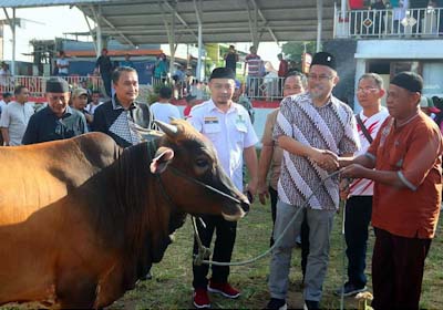 Penyaluran Hewan Qurban dilakukan di Lapangan Sparta Tikala Kota Manado, dan diserahkan langsung oleh Wakil Wali Kota Manado dr Richard Sualang, Rabu(28/6/2023).