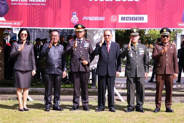 Bupati Minahasa Royke Octavian Roring dalam sambutannya, atas nama pemerintah dan masyarakat menyampaikan selamat hari Bhayangkara ke 77 kepada segenap keluarga besar kepolisian Republik Indonesia.