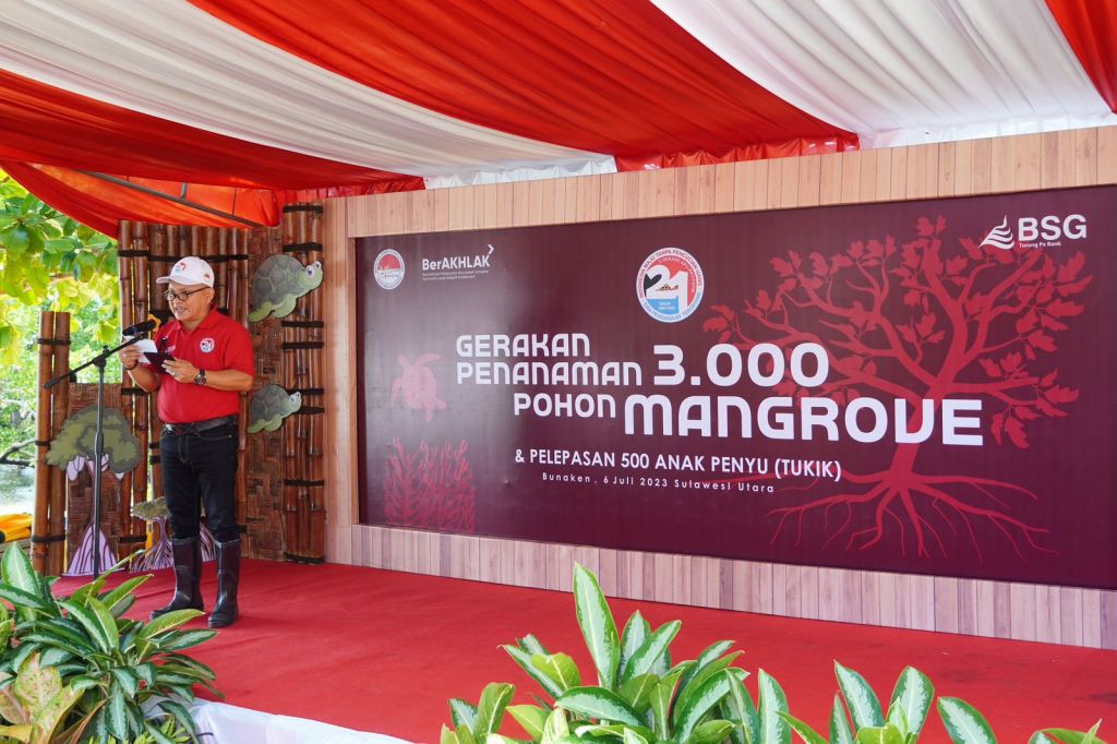 SULUTNEWSTV.com, MANADO – Sebagai bentuk peringatan 21 Tahun Gerakan Nasional Rezim Anti Pencucian Uang dan Pencegahan Pendanaan Terorisme, Bank SulutGo (BSG) bersama Pusat Pelaporan dan Analisis Transaksi Keuangan (PPATK) melakukan penanaman 3000 pohon mangrove dan melepasliarkan 500 ekor anak penyu (Tukik), di Pulau Bunaken, Kamis (6/7/2023).