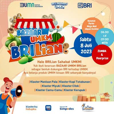 Kegiatan Bazaar dilakukan di Halaman Parkir Kawasan Megamas Manado, Sabtu(8/7/2023) yang melibatkan 6 klaster binaan BRI.