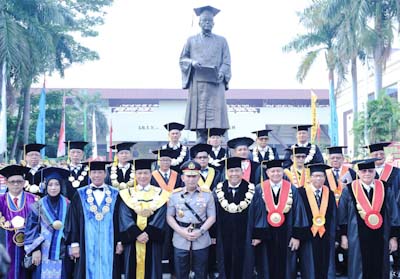 Menutup orasi ilmiahnya Prof. Dr. Petrus R. Golose membacakan pantun dihadapan para tamu undangan.