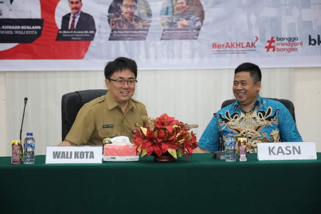 SULUTNEWSTV.com, MANADO – Wali Kota Manado Andrei Angouw membuka kegiatan Sosialisasi KASN dengan tema ‘Menjaga Pengisian JPT dan Manajemen ASN dari Dampak Pilkada’, di aula Kantor BKPSDM Kota Manado, Selasa(25/7/2023).