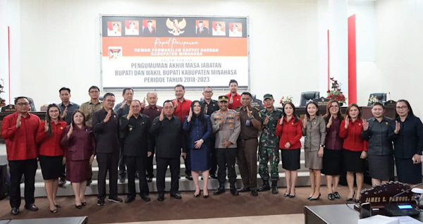 Tondano – Dewan Perwakilan Rakyat Daerah (DPRD) Kabupaten Minahasa, menggelar rapat paripurna pengumuman akhir masa jabatan kepala dan wakil kepala daerah, periode 2018-2023, bertempat di Ruang Sidang DPRD, Rabu (9/8/23).