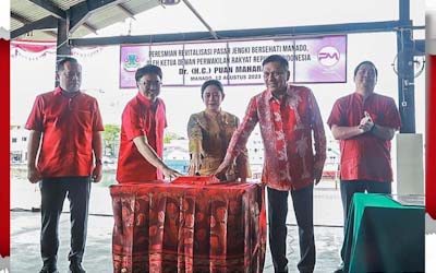 SULUTNEWSTV.com, MANADO – Ketua DPR RI Dr. (H.C) Puan Maharani meresmikan revitalisasi Pasar Jengki Bersehati Manado, Sabtu (12/08/23).