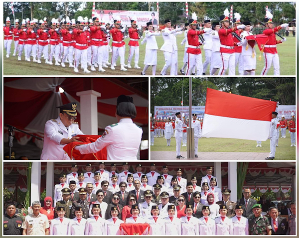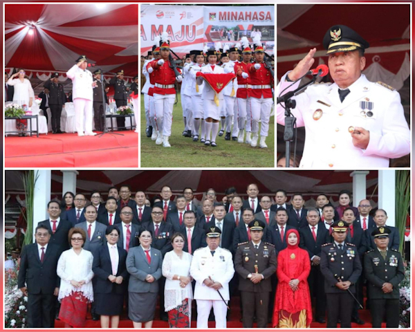 Upacara kemerdekaan Indonesia tingkat Kabupaten Minahasa ini berlangsung khidmat, dimana Bupati Minahasa Dr. Ir Royke Octavian Roring, MSi bertindak selaku Inspektur Upacara dengan diikuti unsur TNI, Polri, ASN, anggota organisasi dan elemen masyarakat.