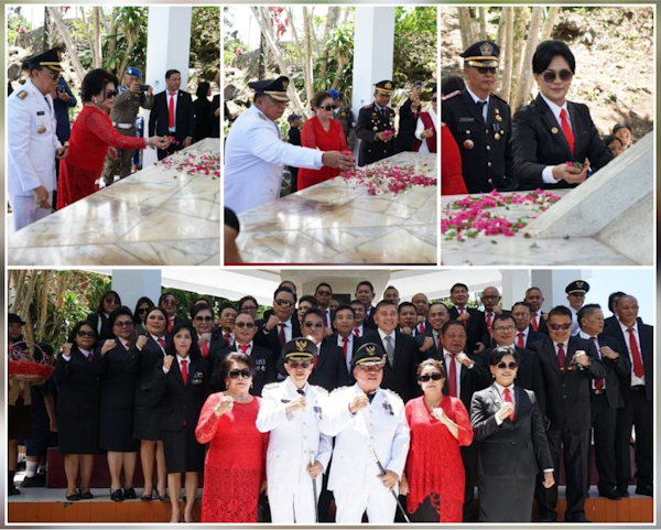 Usai upacara bendera, Bupati Minahasa Dr. Ir Royke Octavian Roring, MSi dan Wakil Bupati DR Robby Dondokambey, SSi, MM, MAP bersama Forkopimda dan para kepala-kepala OPD melaksanakan ziarah ke taman makam pahlawan Dr G S.S.J Sam Ratulangi Tondano.