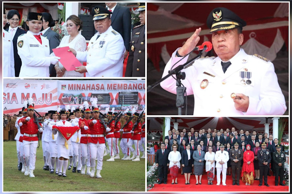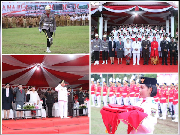 Pasukan pengibar bendera pusaka (Paskibraka) yang terdiri dari anak-anak SMA dan SMK se kabupaten Minahasa, tampil gagah dan meyakinkan saat melaksanakan tugasnya menurunkan bendera.