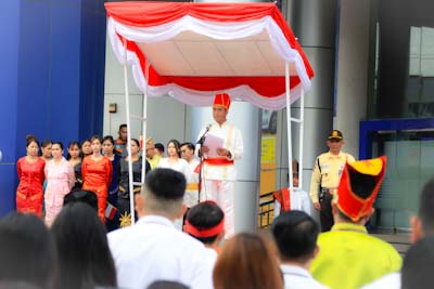 SULUTNEWSTV.com, MANADO – Seluruh jajaran Direksi dan Karyawan PT Bank Rakyat Indonesia (Persero) Tbk atau BRI, turut serta menggelar upacara Detik-Detik Proklamasi Kemerdekaan Republik Indonesia (RI) ke-78 tahun. Di Regional Office BRI Manado pun turut melaksanakan upacara yang dipimpin langsung oleh Regional CEO BRI Luthfi Iskandar, Kamis(17/8/2023).