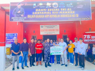 SULUTNEWSTV.com, MANADO – Lantamal VIII Manado beserta stakeholder terkait melaksanakan bakti sosial dalam rangka HUT ke-78 Republik Indonesia (RI). Bakti sosial ini dipusatkan di Desa Likupang 2, Kecamatan Likupang Barat, Minahasa Utara, pekan lalu.