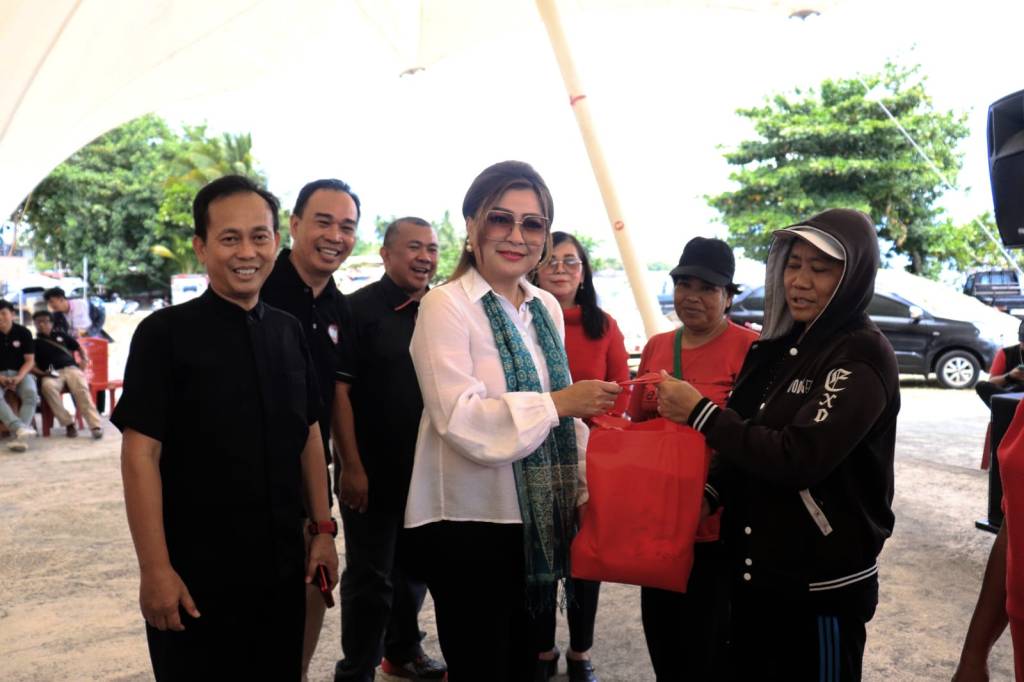 Acara selanjutnya penyerahan bingkisan kasih kepada para pekerja kebersihan di Kecamatan Tuminting oleh ketua TP-PKK Kota Manado, Irene Golda Angouw – Pinontoan (IGP).