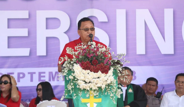 Kegiatan HUT ke 89 GMIM bersinode ini mengambil tema “Bangkit dan Bersinarlah” berlangsung di lapangan Schwarz Desa Wolaang, Kecamatan Langowan, Jumat (1/9/2023).