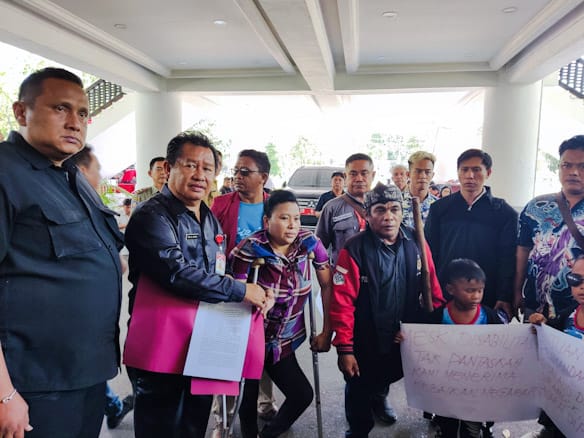 Dalam aksi demonya, Manumbalang, istri yang juga disabilitas serta kedua anaknya menyayangkan sikap dari Dinas Sosial Talaud.