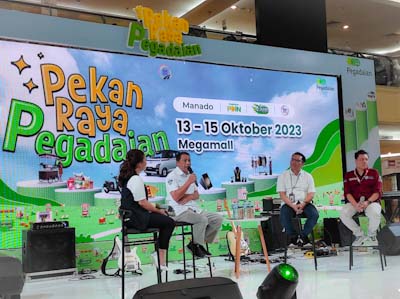 SULUTNEWSTV.com, MANADO – Dalam rangka bulan inklusi keuangan, PT Pegadaian Kantor Wilayah V Manado menggelar Pekan Raya Pegadaian. Kegiatan dilaksanakan di Atrium Megamall Manado, dengan Nuansa Pesta Rakyat serta melibatkan puluhan UMKM, yang digelar mulai dari Jumat 13 Oktober Hingga Minggu 15 Oktober 2023.