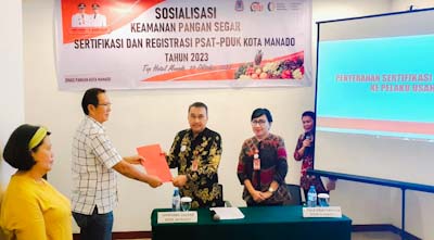 Sementara, Kepala Dinas Pangan Kota Manado Ir. Meisje Wollah menambahkan, tujuan dari kegiatan ini untuk mendukung peningkatan jumlah pangan yang segar yang terdaftar serta meningkatnya penjaminan keamanan pangan segar yang diedarkan.