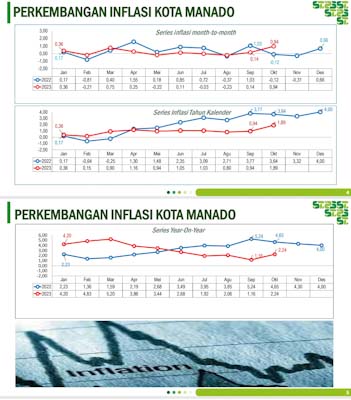 SULUTNEWSTV.com, MANADO – Kota Manado mengalami inflasi 0,94 persen pada bulan Oktober 2023. Dan sampai dengan Oktober 2023, inflasi tahun kalender sebesar 1,89 persen. Sedangkan inflasi tahun ke tahun mencapai 2,24 persen.