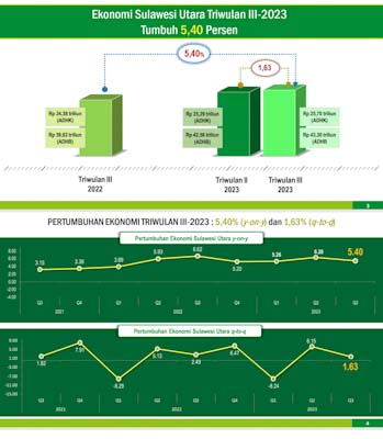 SULUTNEWSTV.com, MANADO – Pertumbuhan Ekonomi (PE) di Provinsi Sulawesi Utara (Sulut) mengalami pertumbuhan sebesar 5,40 persen di triwulan III tahun 2023.