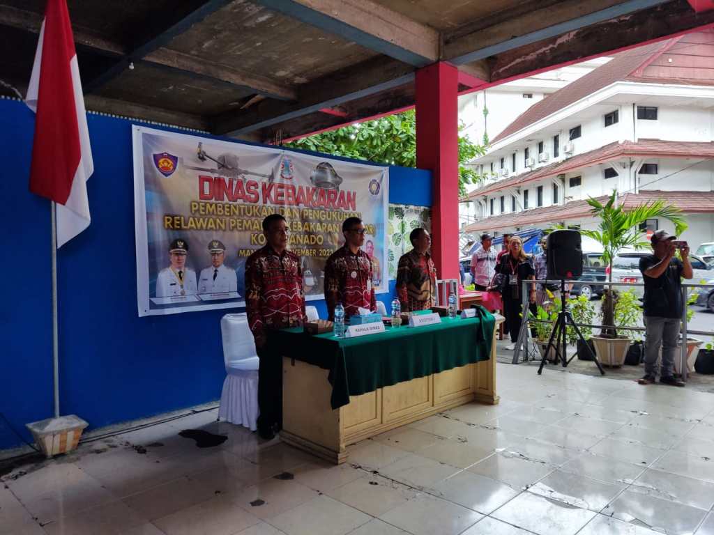 Tim relawan dikukuhkan oleh Asisten 1 bidang Pemerintahan Kota Manado Julises Oehrels, SH didampingi Sekretaris Dinas Damkar Kota Manado William Wongkar dengan menyerahkan secara simbolis kostum dan topi kepada perwakilan relawan, di kantor Damkar Kota Manado, Kamis(9/11/2023).