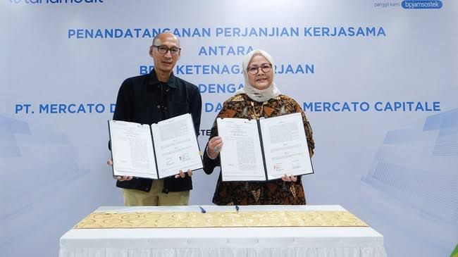 Kerja sama ini ditandai dengan penandatanganan Perjanjian Kerja Sama (PKS) oleh Direktur Pelayanan BPJS Ketenagakerjaan Roswita Nilakurnia dan Direktur dan founder PT Mercato Digital Asia, Indra Suryawan di Grha BPJAMSOSTEK.
