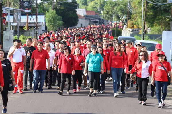 Tondano- Ketua TP-PKK Provinsi Sulut, Ny Rita Maya Dondokambey-Tamuntuan didampingi Sekretaris, Ny Devi Kartika Kandouw-Tanos bersama Ketua TP-PKK Minahasa, Ny Djeneke Kumendong-Onibala, berbaur bersama Dharma Wanita dan murid-murid sekolah di Kabupaten Minahasa melakukan olahraga gerak jalan sehat dalam rangka Gebyar Hari Ibu.