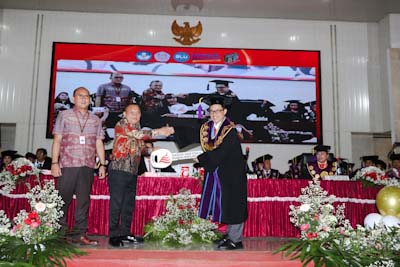 “Pada momentum acara puncak Dies Natalis Unsrat ini, kami menyerahkan secara langsung 1 unit Bus yang telah kami janjikan bagi civitas akademik Unsrat sebagai wujud Tanggung Jawab Sosial kami. Kiranya bus ini dapat dimanfaatkan dan berguna sebaik mungkin untuk kepentingan operasional dan Pendidikan di Universitas kebanggaan Sulawesi Utara ini,” ungkap Direktur Umum BSG, Joubert Dondokambey.