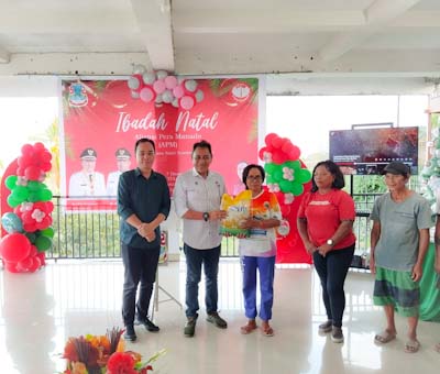 Dalam ibadah tersebut APM juga menyerahkan bingkisan Natal berupa sembako ke sejumlah Petugas Kebersihan.