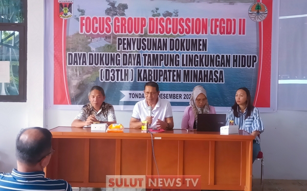 MINAHASA – Dinas Lingkungan Hidup (LH) Kabupaten Minahasa menggelar Focus Grup Discussion (FGD) II Dokumen Daya Dukung Daya Tampung Lingkungan Hidup (D3TLH) Kabupaten Minahasa Tahun 2023 di Aula Dinas LH, Kamis (7/12/23).