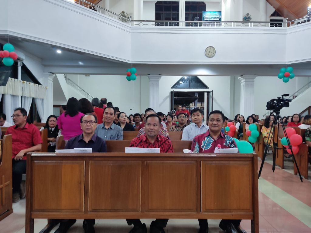 Ibadah pun dipimpin langsung oleh Khadim Pdt Evangeli M. Mongonsidi-Karamoy, M.Th, M.PdK. Turur hadir, Kepala Dinas Pendidikan Kota Manado Steven Tumiwa, Kepala Diskominfo Kota Manado Rein Heydemans, Kadispora Pontowuisang Kakauhe, Kadisnaker Paul Sualang, Kabag Otniel Tewa, Camat Sario Hendri Lasut, Para Staf Khusus, BKSAUA Kota Manado, Toko Agama, Kepala Lingkungan dan Pelsus, serta Jemaat GMIM Petra Sario-Tumpaan.(*/gabby)