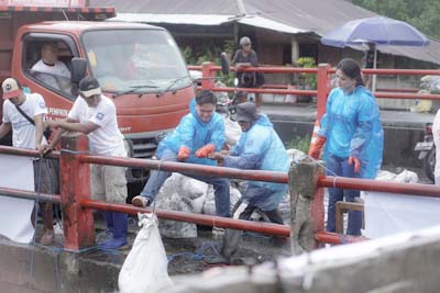 Terpantau, dari sejak pagi, warga bersama karyawan BRI mengangkat sampah yang menumpuk di aliran sungai. Sampah yang didominasi botol plastik dikumpulkan dalam karung dan ditimbang, kemudian dibawa ke TPA dan bank sampah.