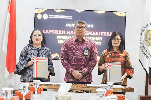Minahasa – Pemerintah Kabupaten Minahasa menerima Laporan Hasil Pemeriksaan (LHP) Kinerja Semester II Pemkab Minahasa Tahun 2023 dari Badan Pemeriksa Keuangan (BPK) RI Perwakilan Provinsi Sulawesi Utara di Kantor BPK Perwakilan Sulut, Kamis (11/1/2024).