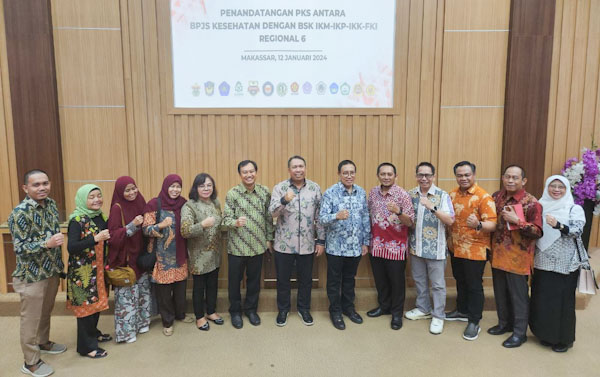 Makassar – BPJS Kesehatan menggandeng Badan Kerja Sama Bagian Ilmu Kesehatan Masyarakat – Ilmu Kedokteran Pencegahan – Ilmu Kedokteran Komunitas Fakultas Kedokteran se Indonesia (BKS IKM-IKP-IKK-FKI) untuk bersinergi dalam pengembangan kompetensi dokter di bidang pembiayaan kesehatan Program Jaminan Kesehatan Nasional (JKN).