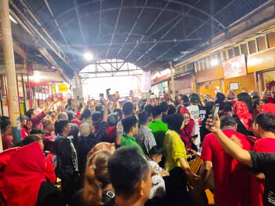 SULUTNEWSTV.com, MANADO – Masyarakat yang ada di Djalan Roda (Djarod) desak-desakkan menyambut kedatangan istri tercinta Calon Presiden Hj Siti Atiqoh. Sesuai dengan agenda, Ibu Siti akan temu sapa dengan pelaku UMKM dan pedagang yang ada di Djarod.