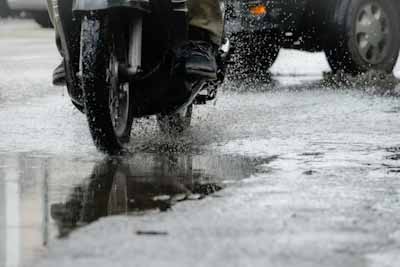 Mengendarai sepeda motor di musim hujan membuat pengendara motor lebih beresiko dimana gangguan bisa datang dari kondisi fisik yang menurun, gangguan penglihatan, jalan licin, jalan rusak hingga genangan air yang menutupi muka jalan.