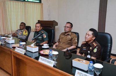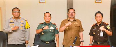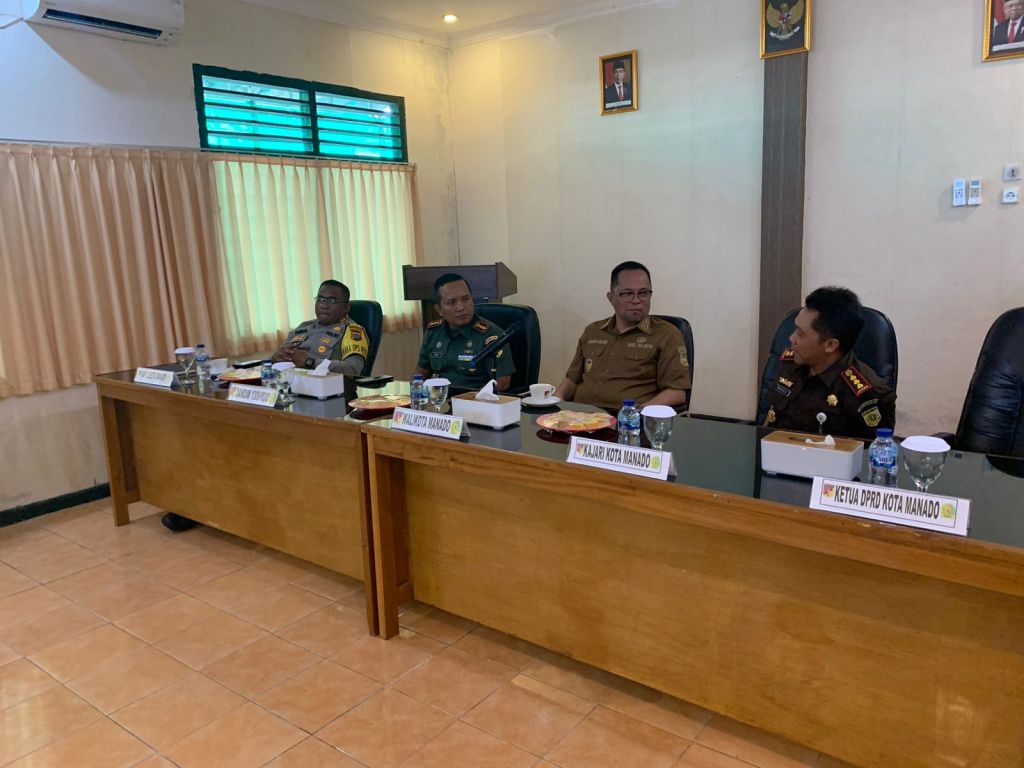 Hadir dalam vicon ini, Dandim 1309/Manado, Kolonel Inf Himawan Teddy Laksono S.I.Kom, M.Tr (Han), Kajari Manado, Wagiyo SH, MH, Wakapolresta Manado, AKBP Faisol Wahyudi.(*/gabby)