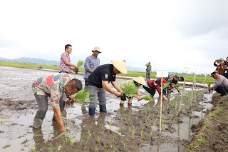Kepada media ini, Bupati JSK bersama Sekretaris Daerah Dr. Lynda Watania, MSi mengatakan, selain melakukan penanaman padi, diserahkan juga bibit padi dan bibit cabe untuk pekarangan.