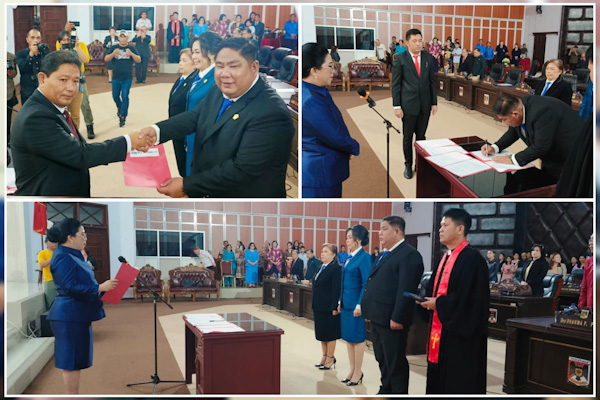 Di kesempatan itu, Ketua DPRD Glady Kandouw membacakan nota pelantikan dan pengambilan sumpah janji sekaligus memasangkan pin kepada anggota legislatif yang baru.